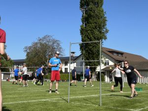 Das Sportprogramm wurde durch verschiedene Spielsequenzen aufgelockert. Hier standen unter anderem Fussball- und Frisbeespiele zur Auswahl, wo alle Turnerinnen und Turner in durchmischten Teams um den Sieg kämpfen konnten. Für die beiden Männerriegen Remigen und Hausen durfte natürlich das Faustball Training und schliesslich ein kleiner Match nicht fehlen.
